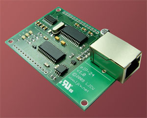 The eIP-24 is a small network module implemented with Microchip's PIC24HJ128GP202 16-bit